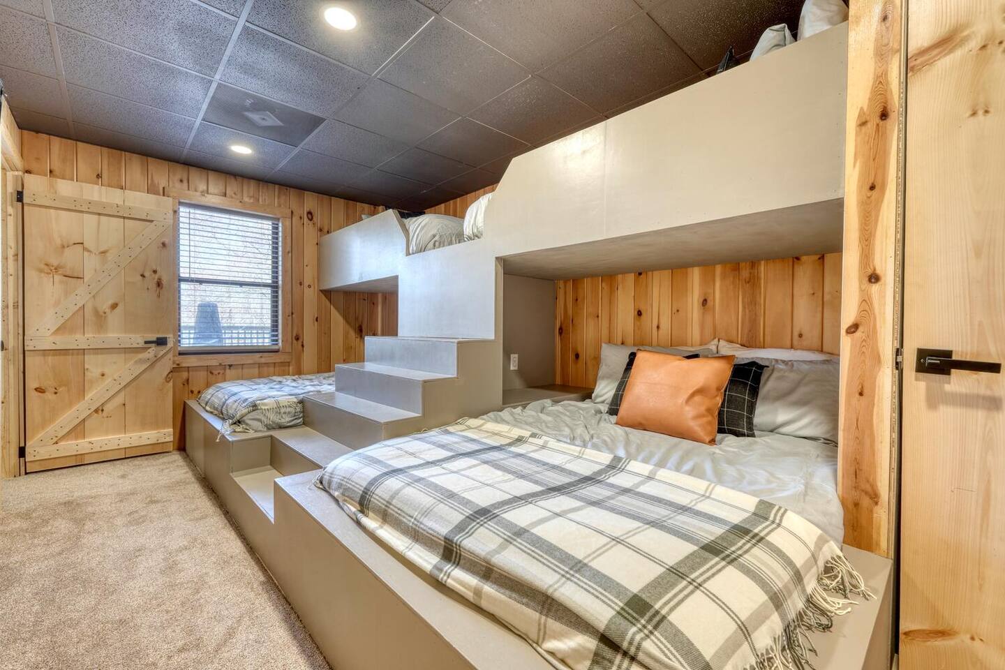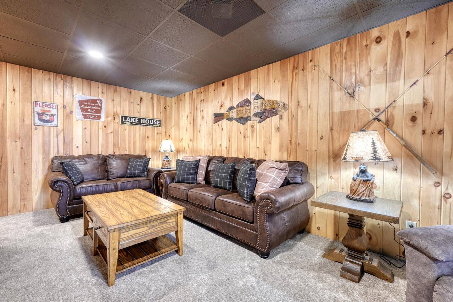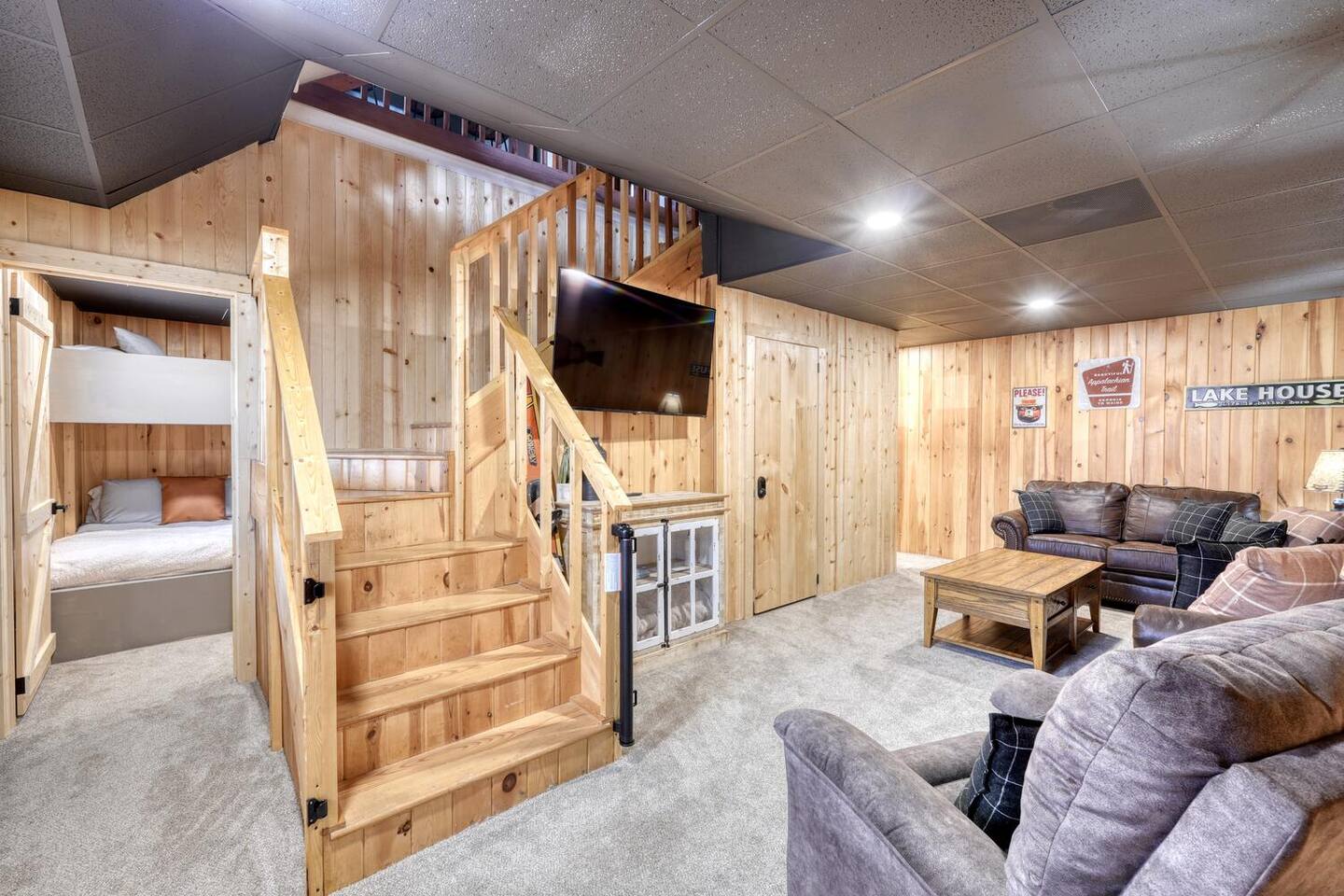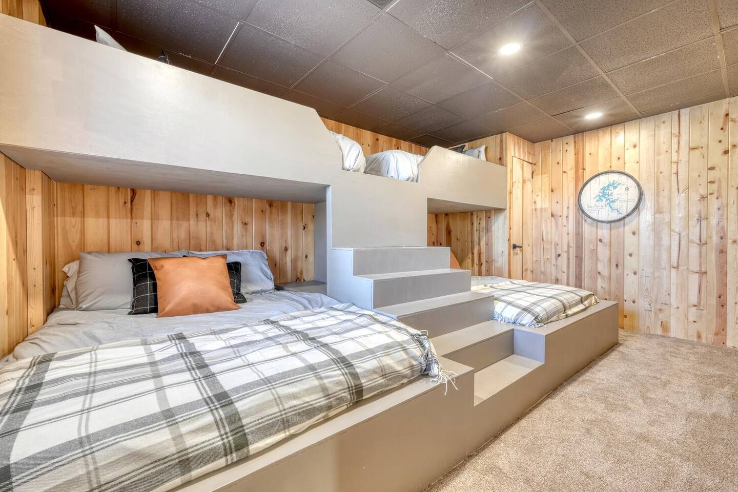 These newly remodeled lakefront cabins blend modern comfort with classic charm. The main home has 2 bedrooms, 2.5 baths, a gourmet kitchen, a dining table for 14, and a cozy living area with a stone fireplace. The walkout basement adds extra space, a bunk room, and access to two decks with a hot tub and stunning views. The guest house offers a full kitchen, bath, queen bedroom, and pullout couch, plus a covered lakeside porch. Perfect for multiple families or large retreats!