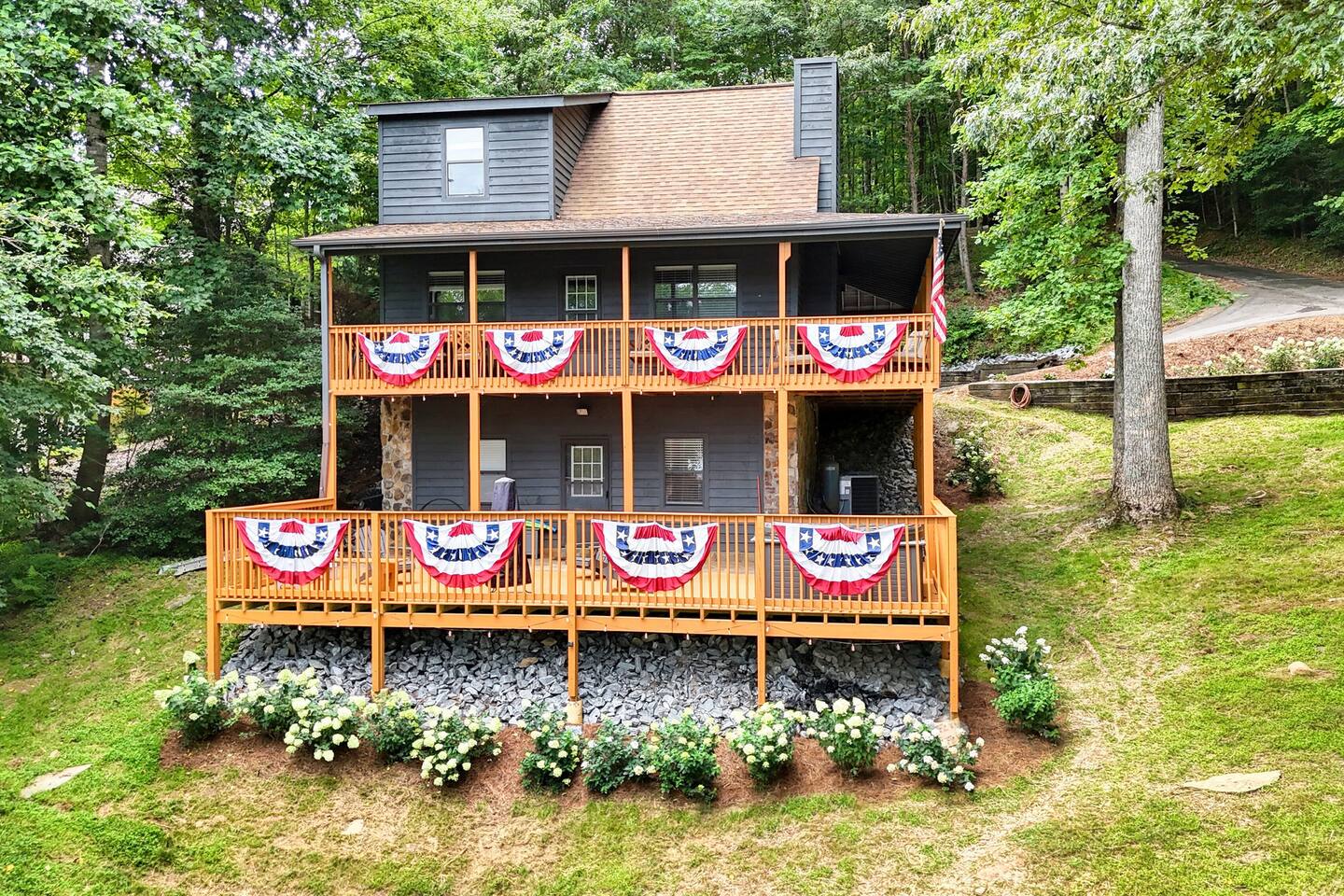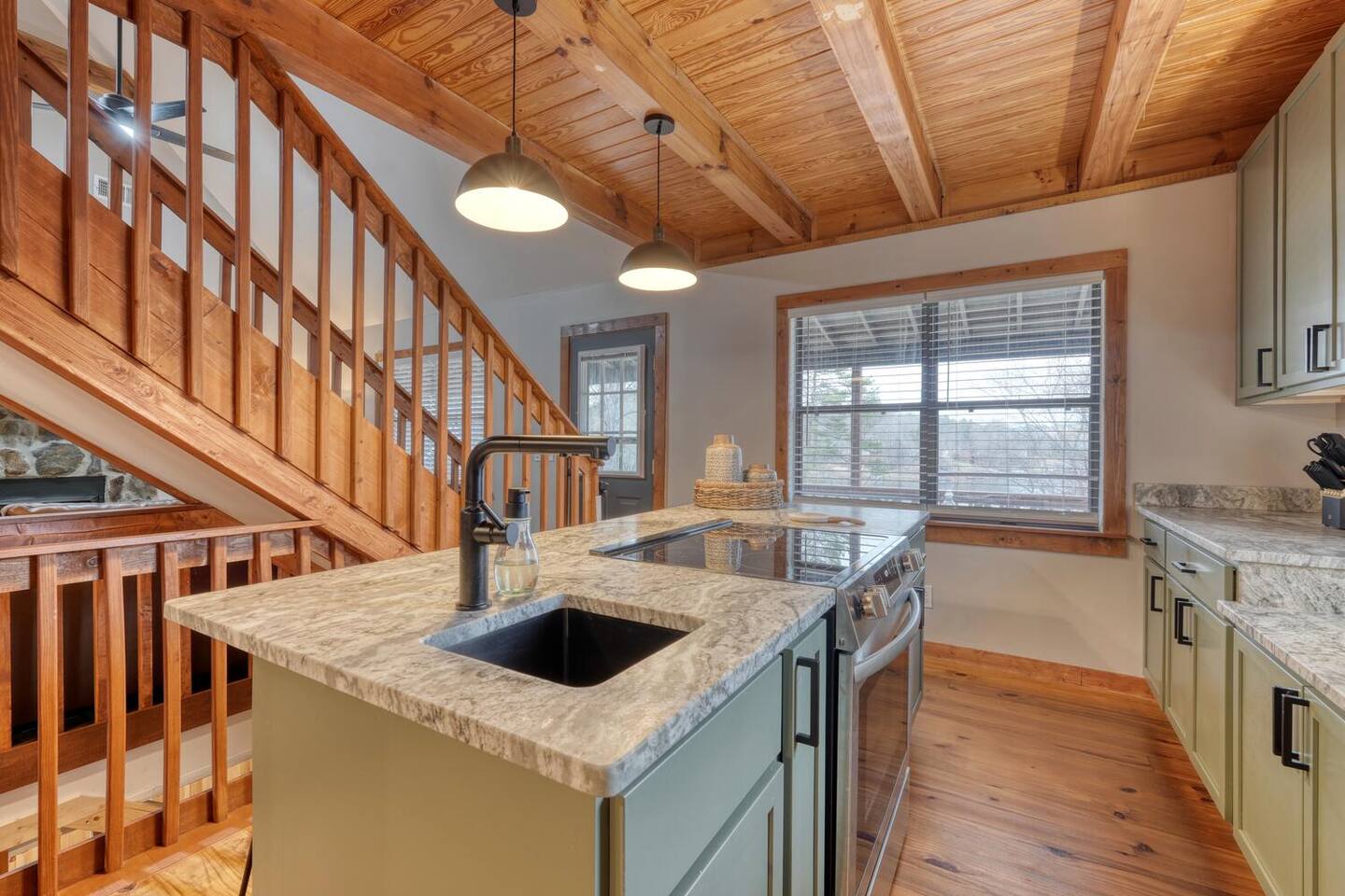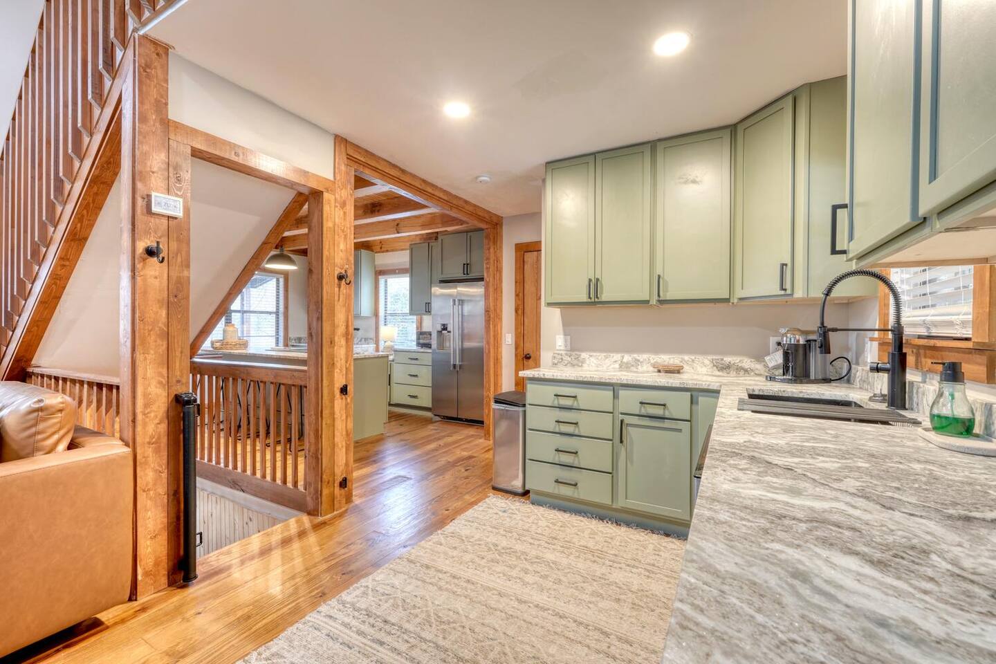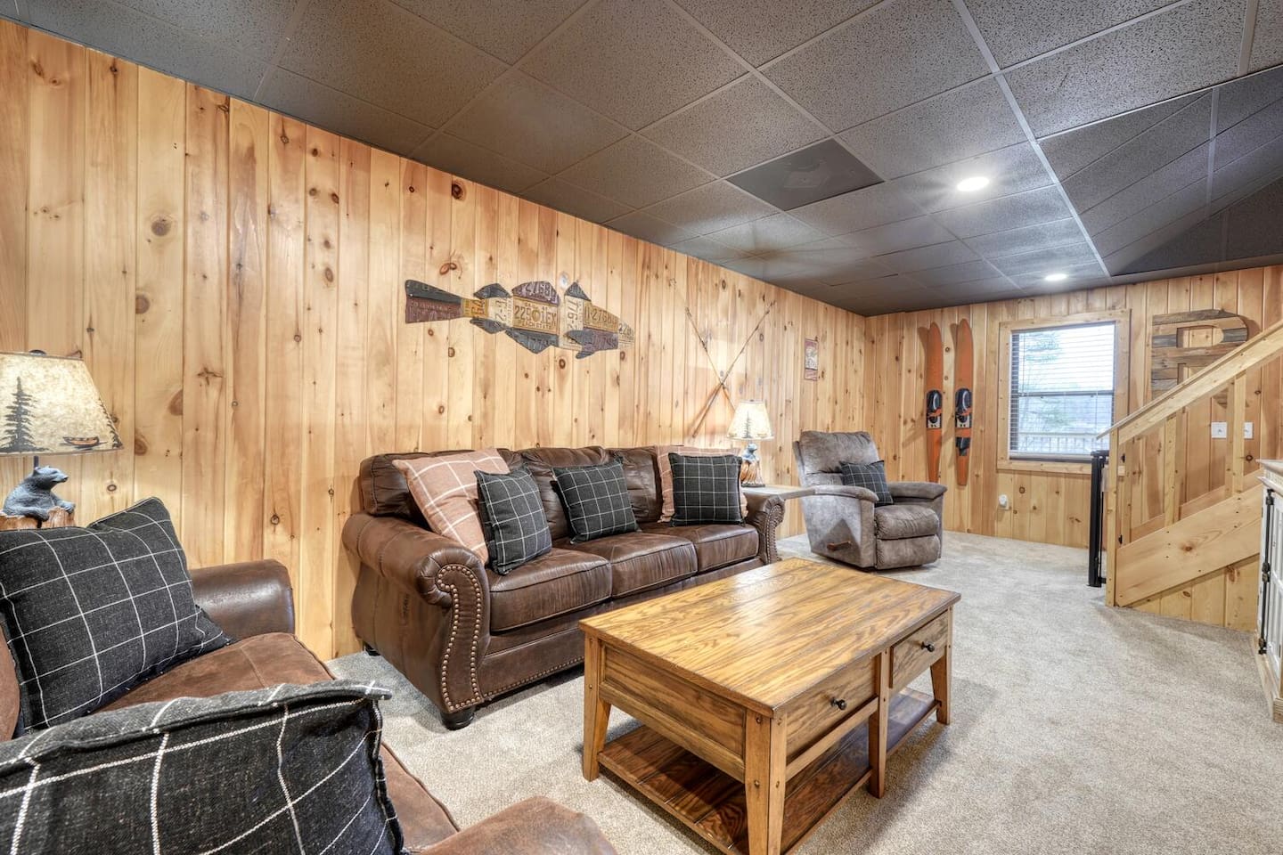 These newly remodeled lakefront cabins blend modern comfort with classic charm. The main home has 2 bedrooms, 2.5 baths, a gourmet kitchen, a dining table for 14, and a cozy living area with a stone fireplace. The walkout basement adds extra space, a bunk room, and access to two decks with a hot tub and stunning views. The guest house offers a full kitchen, bath, queen bedroom, and pullout couch, plus a covered lakeside porch. Perfect for multiple families or large retreats!