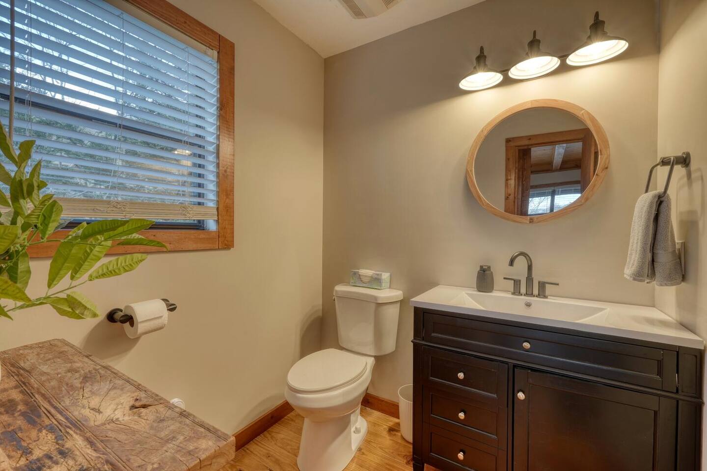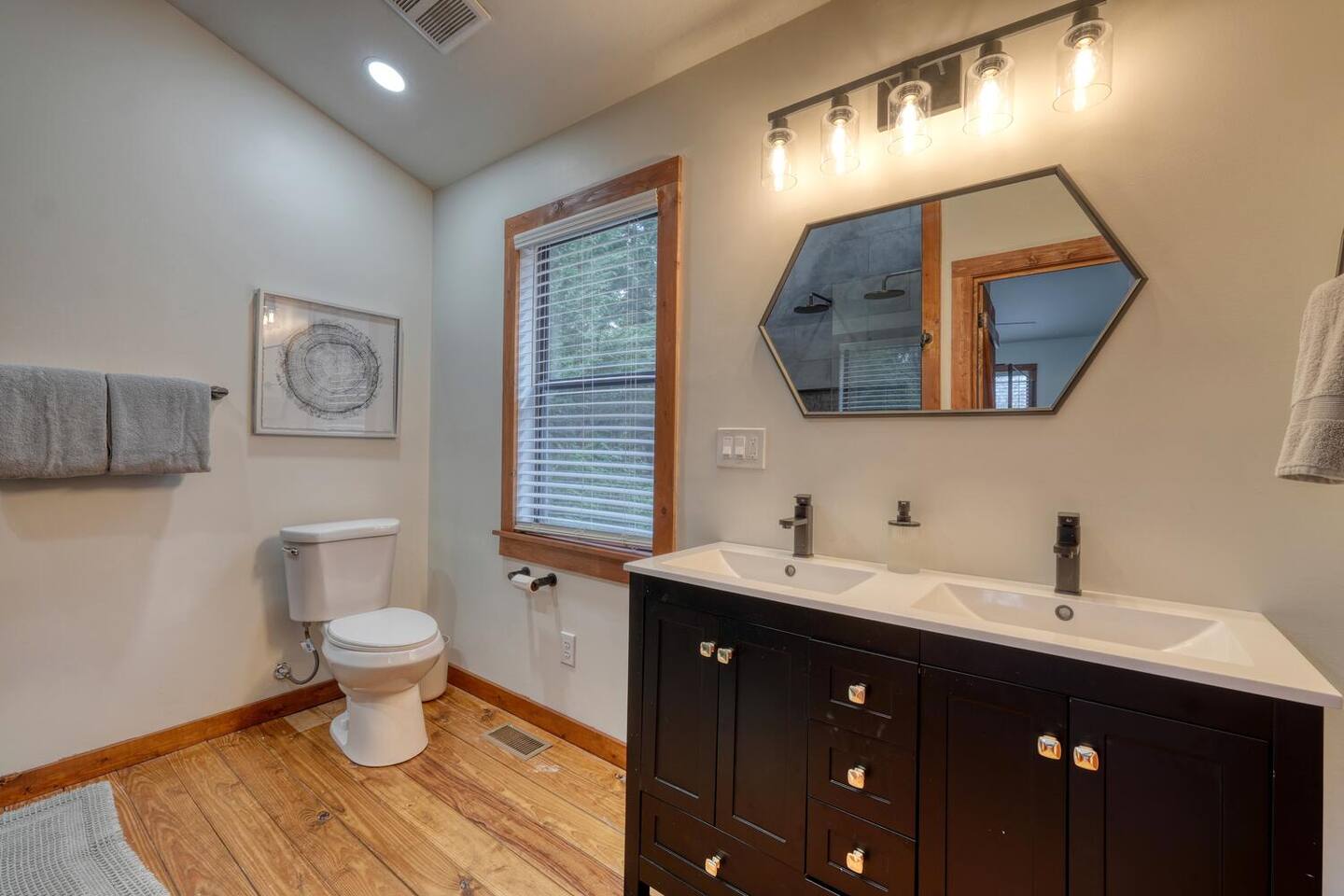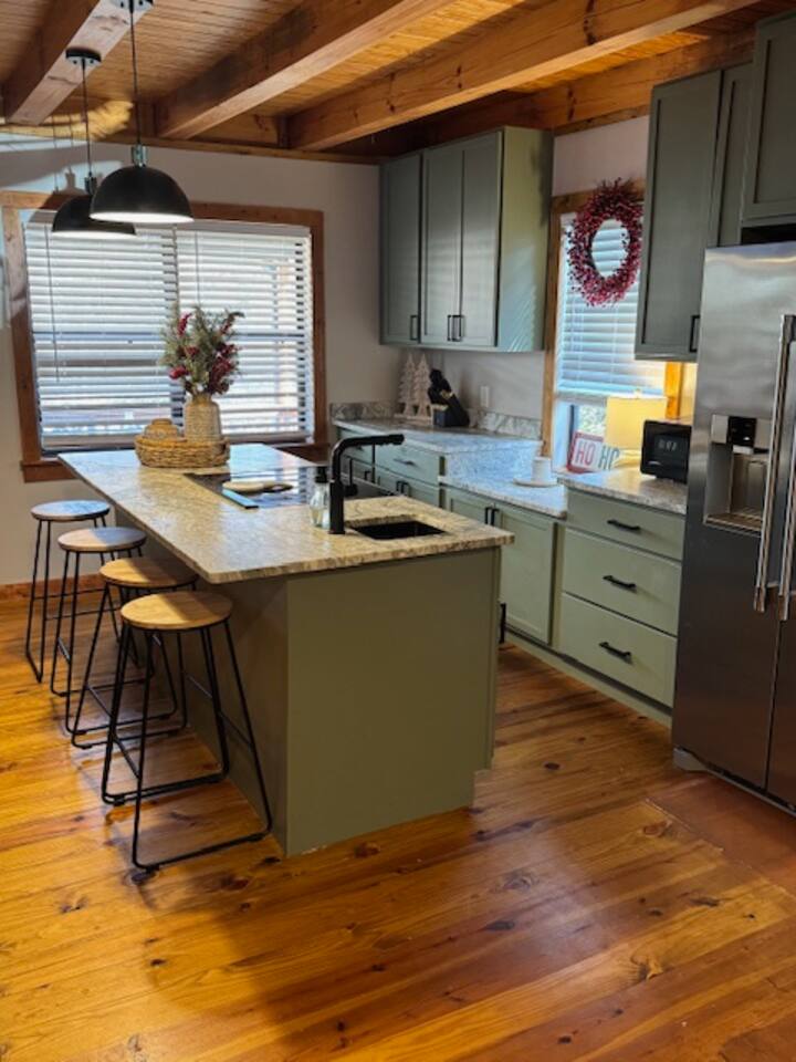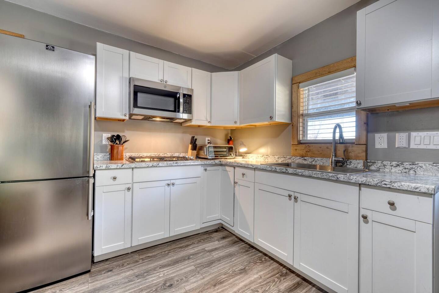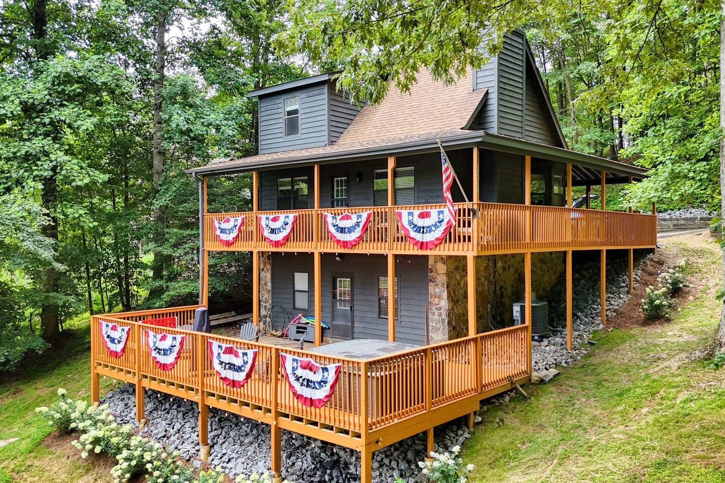 These newly remodeled lakefront cabins blend modern comfort with classic charm. The main home has 2 bedrooms, 2.5 baths, a gourmet kitchen, a dining table for 14, and a cozy living area with a stone fireplace. The walkout basement adds extra space, a bunk room, and access to two decks with a hot tub and stunning views. The guest house offers a full kitchen, bath, queen bedroom, and pullout couch, plus a covered lakeside porch. Perfect for multiple families or large retreats!