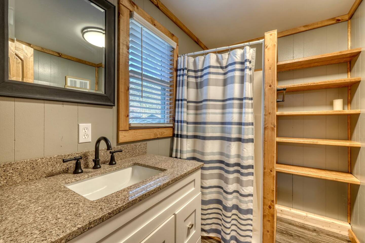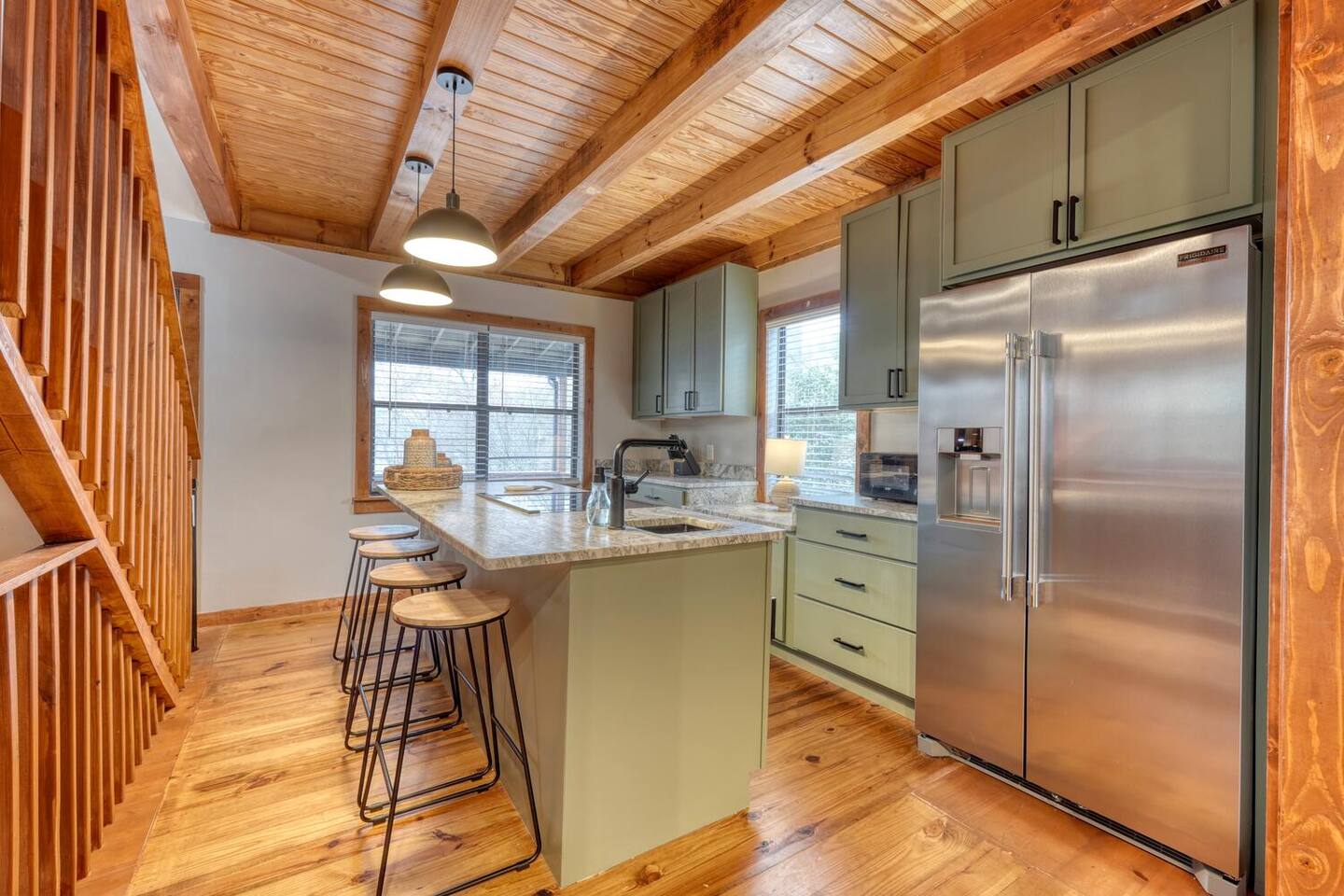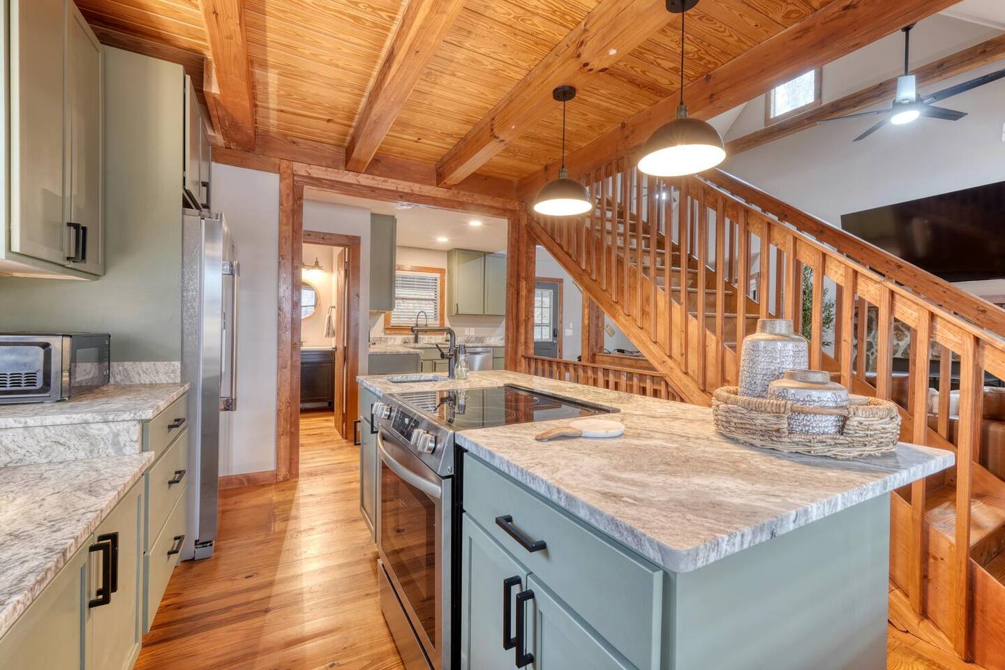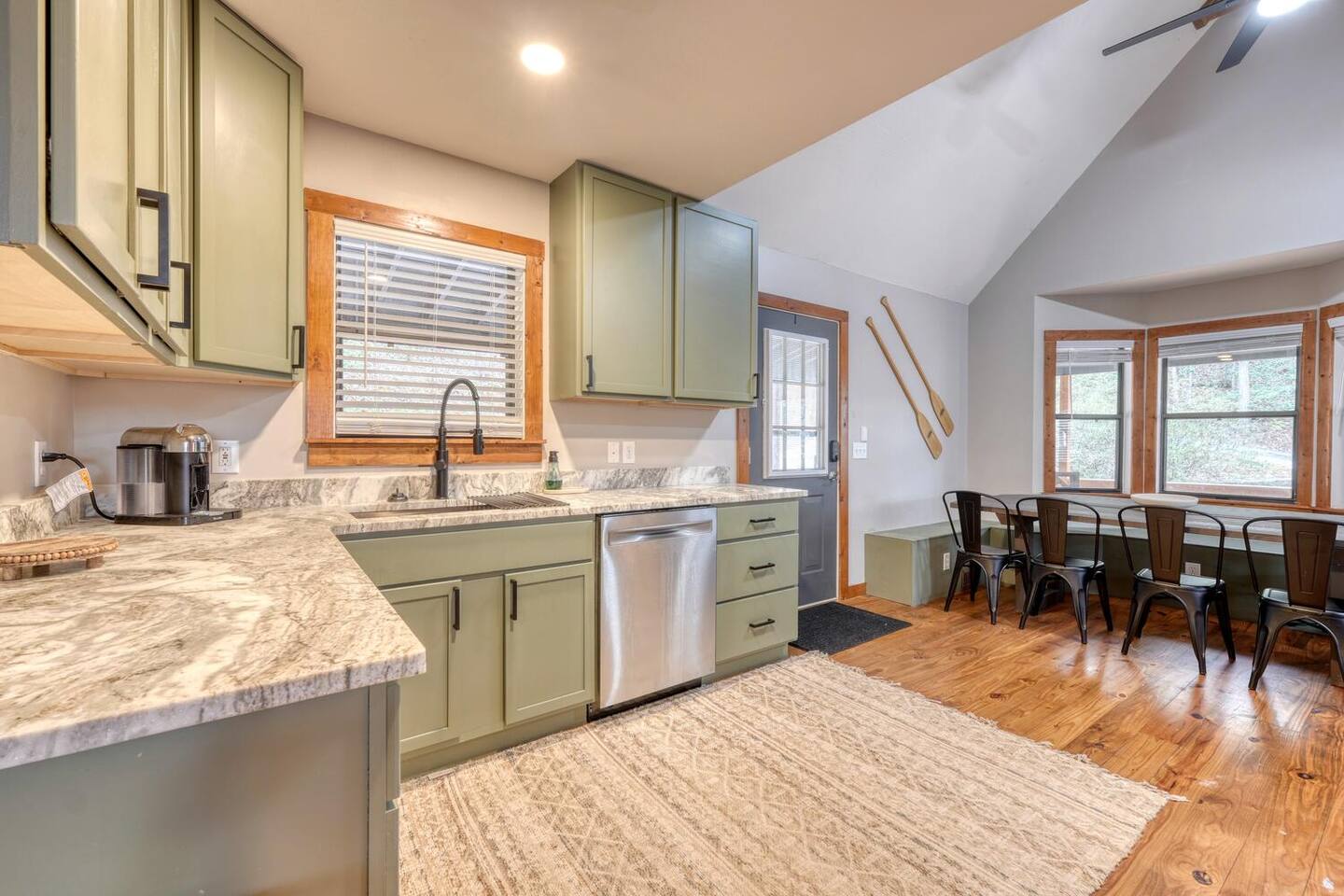 These newly remodeled lakefront cabins blend modern comfort with classic charm. The main home has 2 bedrooms, 2.5 baths, a gourmet kitchen, a dining table for 14, and a cozy living area with a stone fireplace. The walkout basement adds extra space, a bunk room, and access to two decks with a hot tub and stunning views. The guest house offers a full kitchen, bath, queen bedroom, and pullout couch, plus a covered lakeside porch. Perfect for multiple families or large retreats!