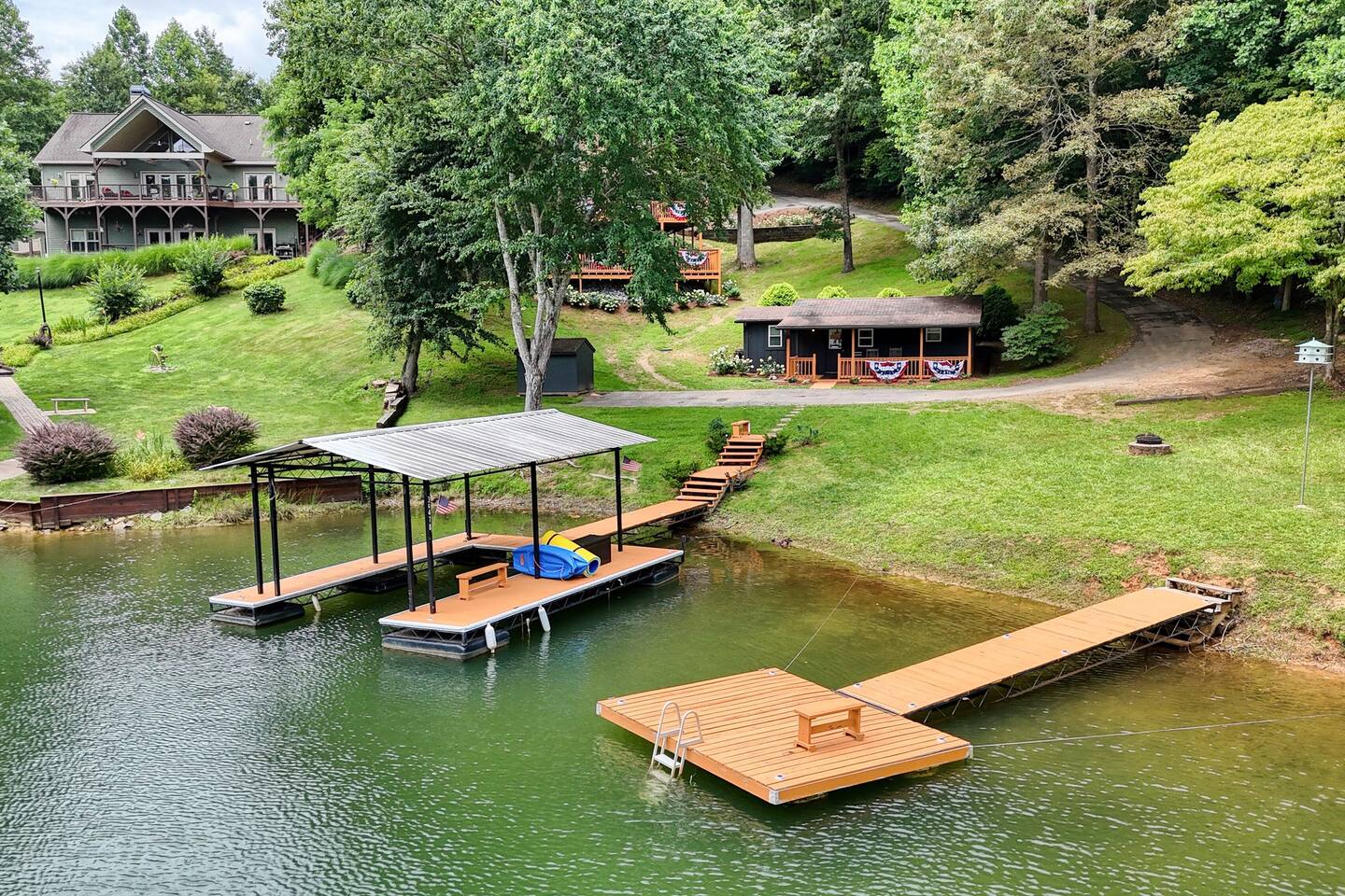 Lakeside Haven: Twin Cabins with Docks & Hot Tub Retreat